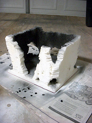 Spraying black on the wall partially